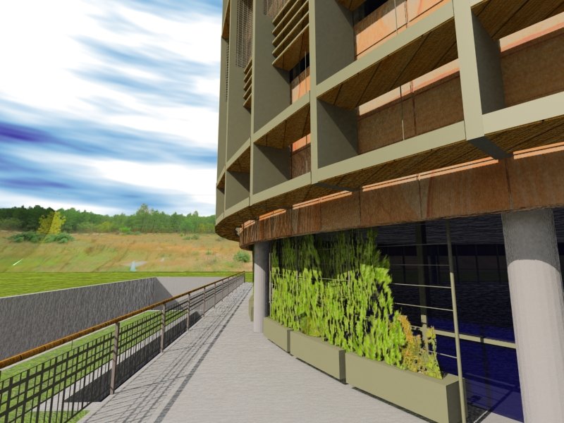 Las modificaciones introducidas en la planta segunda han permitido un planteamiento bioclimático más neto del atrio, en cuya parte superior, que es la que corresponde a la planta segunda, aparece una fachada sur o apertura solar que da a la terraza. Esta apertura solar tiene por detrás una galería, que puede ser habitable, y que alimenta al climatizador que se encuentra en la planta técnica en la parte superior del atrio, con un aporte interesante de calor en invierno. En temporada intermedia, e incluso en situaciones veraniegas con temperaturas exteriores moderadas,  esta galería actuará como promotora de la ventilación.