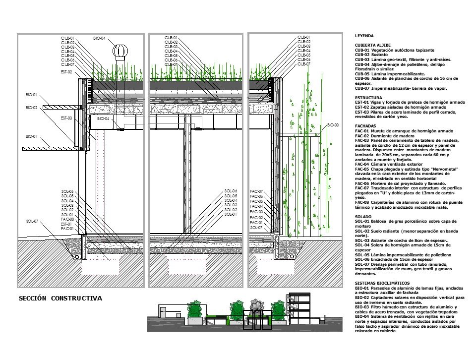 En el presente proyecto se ha dado un papel muy relevante a la vegetación en el diseño bioclimático del edificio. Son diversos los mecanismos proyectados y entre ellos se pueden destacar los siguientes: