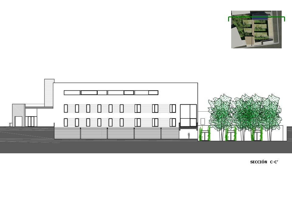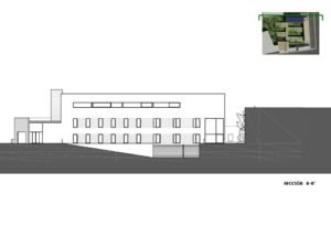 La implantación del edificio en la cota de rasante actual de la parcela evitará los grandes movimientos de tierras y el aprovechamiento del terreno como estabilizador térmico.