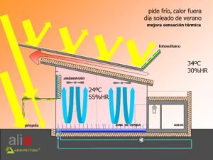 Esto se puede conseguir con relativa facilidad ante todo y sobre todo si el edificio está bien orientado, lo cual quiere decir además que el tratamiento de sus fachadas sea adecuado a la orientación, con los aislamientos adecuados en las paredes más frías, y favoreciendo o rechazando el efecto invernadero según convenga al confort en cada caso.